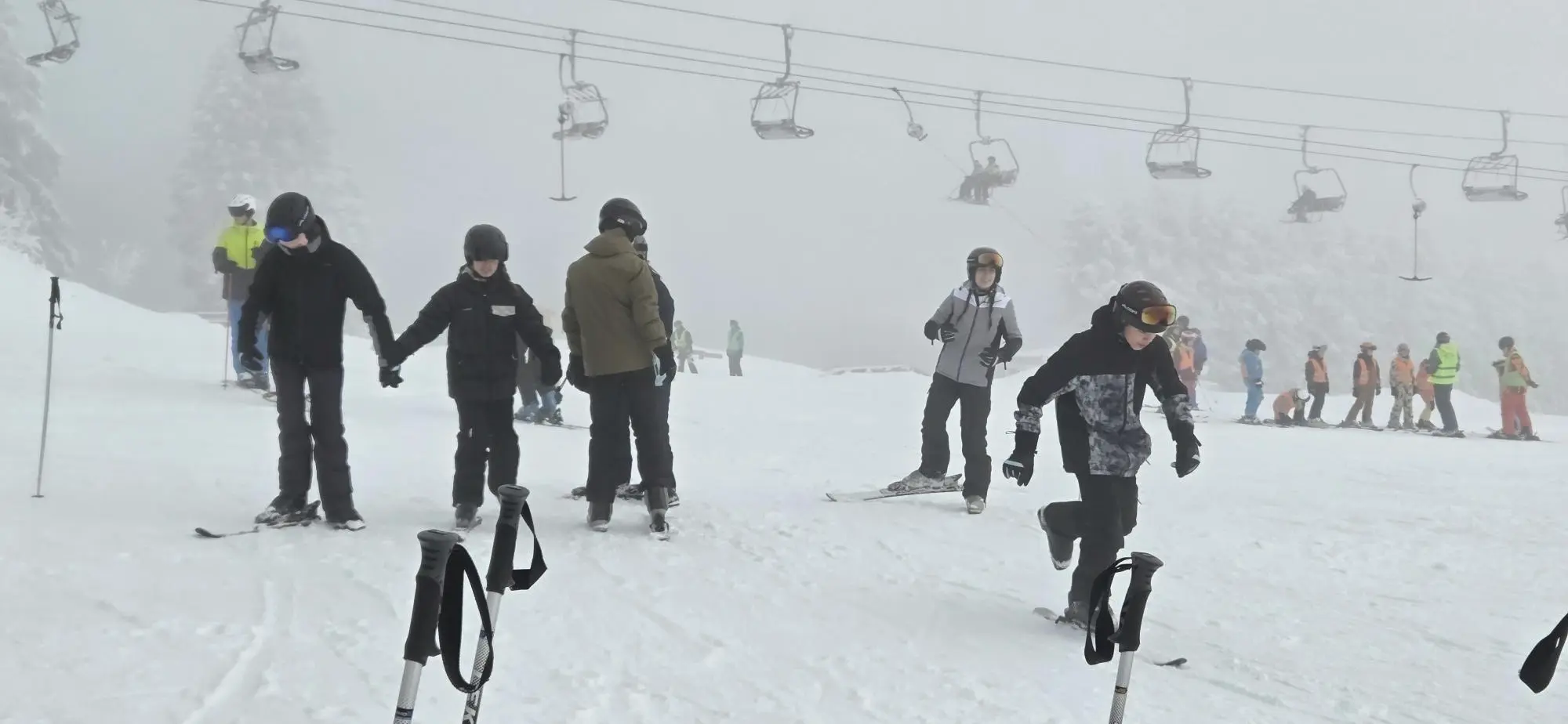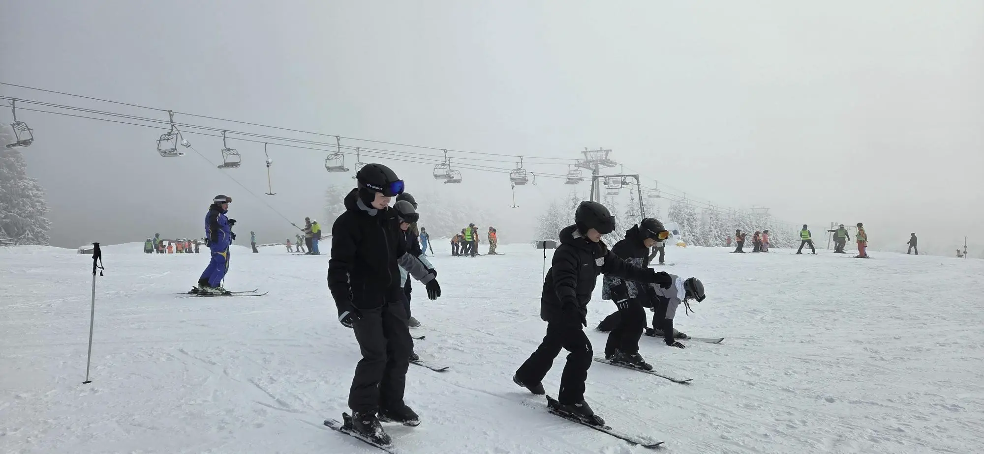 Vor Ort fand mit den meisten Schülerinnen und Schülern die Anfängerschulung statt. Alle konnten dabei erfolgreich ihre ersten Kurven auf Skiern fahren. Mit den bereits erfahrenen Skifahrerinnen und Skifahrern knüpften wir an die Kenntnisse aus den vergangenen Jahren an und nutzten das Skigebiet ausgiebig.