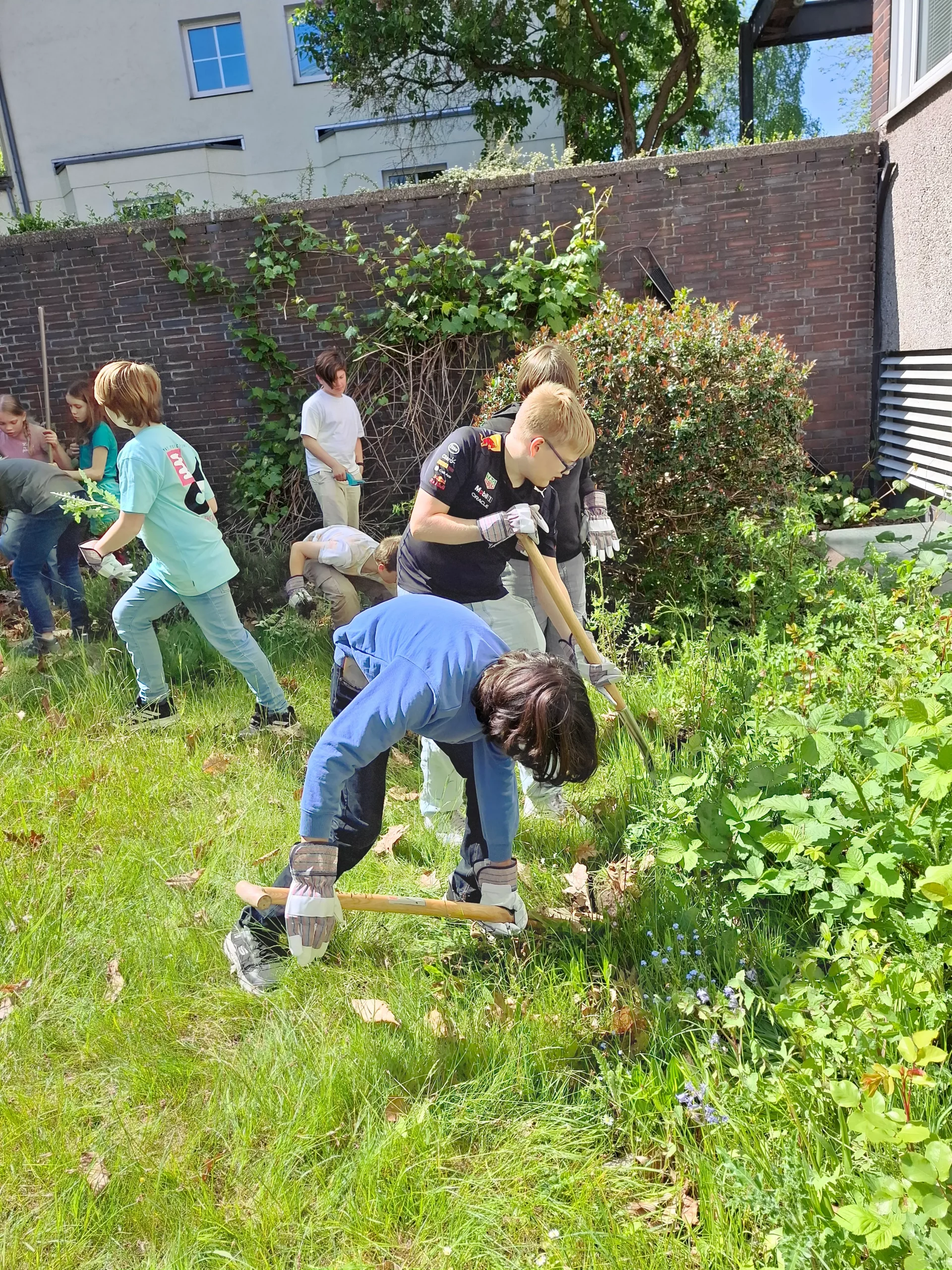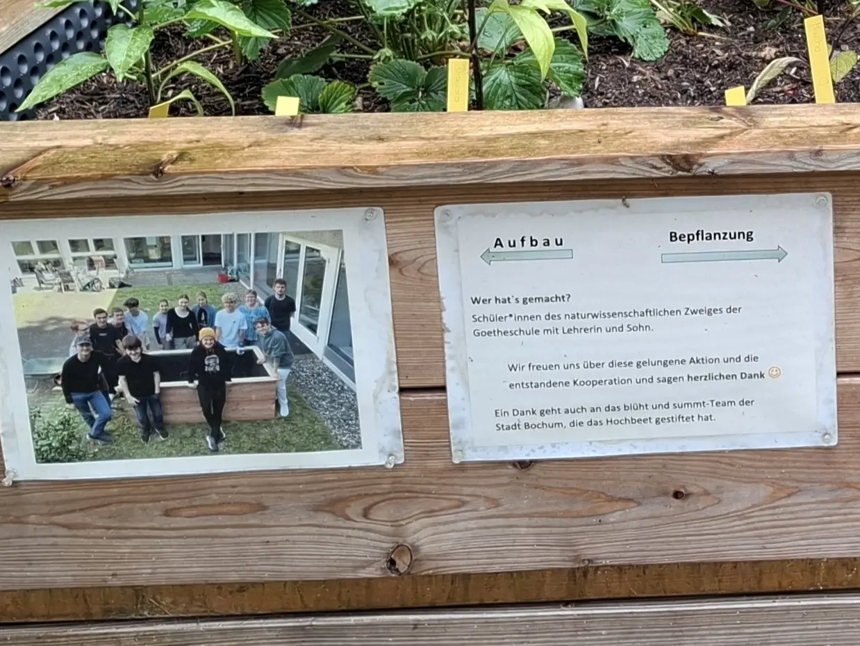 „Im NW-Unterricht haben wir den Garten der Katholischen Erwachsenen- und Familienbildungsstätte am Bergbaumuseum (KEFB) wieder schön gemacht. Mit viel Energie, schmutzigen Händen und richtig guter Laune haben wir das Hochbeet bepflanzt, den Kräutergarten ergänzt und alles Schritt für Schritt zum Aufblühen gebracht.