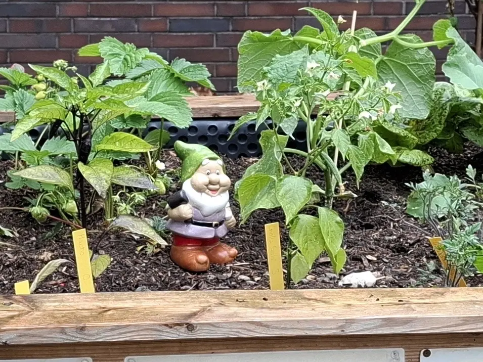 Im Hochbeet tauchte plötzlich ein kleiner Wichtel auf, der uns neugierig beim Arbeiten zuschaute und sich sofort bei uns einrichtete. Unser Gemüse und unsere Kräuter wuchsen richtig gut und versorgten uns, und natürlich auch die Wichtel, mit leckerem Selbstangebautem.