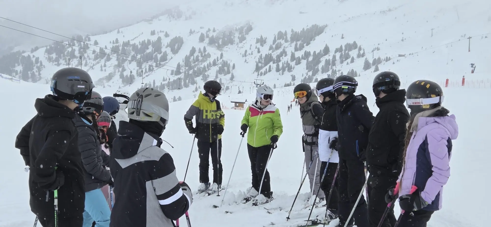 Am zweiten Tag unserer Skifahrt starteten wir bei nebligem Himmel, aber perfekten Schneebedienungen direkt auf dem Berg.