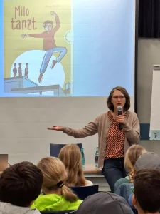 So beschreibt unsere Klasse den Besuch der Lesung am 06. Februar 2026 in der Stadtbücherei Bochum. Vorgestellt wurde das Buch „Milo tanzt“.