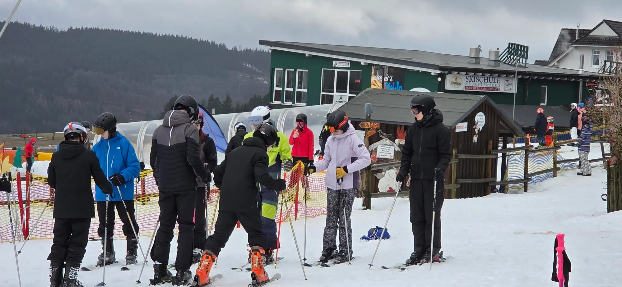 Am Montag, den 23.02., stand für unsere Jahrgangsstufe 9 der zweite Vorbereitungstag für die Skifahrt an – erneut ging es zur Postwiese nach Neuastenberg. Auch wenn uns das Sauerland diesmal eher mit Regen als mit Wintersonne empfing, tat das der Stimmung keinen Abbruch.