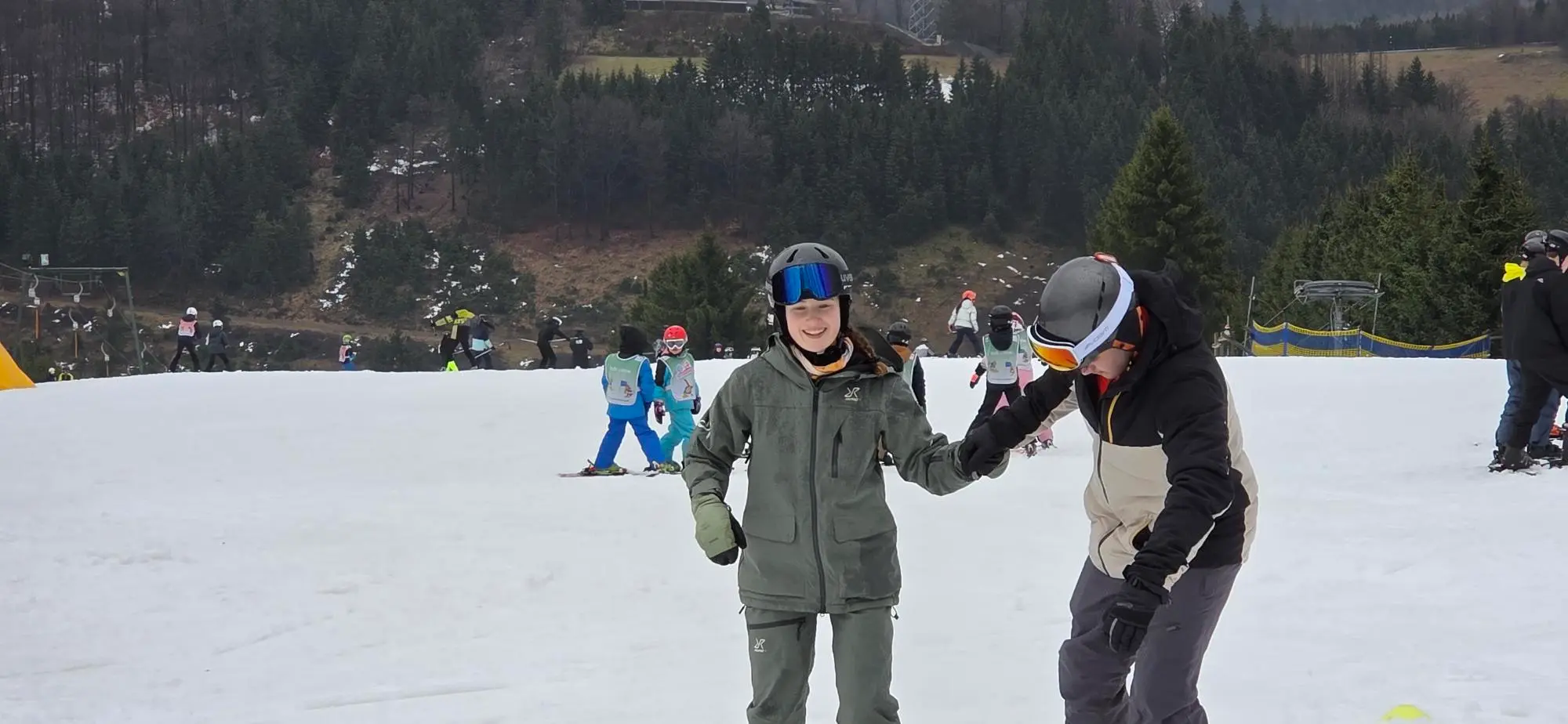 Im Gegenteil: Die Fortschritte unserer Schülerinnen und Schüler waren beeindruckend. Bereits alle konnten ihre ersten Abfahrten sicher meistern und sind mit sichtbarem Stolz den Hang hinuntergefahren. Besonders erfreulich: Einige wagten bereits die ersten parallelen Schwünge – ein großer Meilenstein nach so kurzer Zeit auf Skiern.